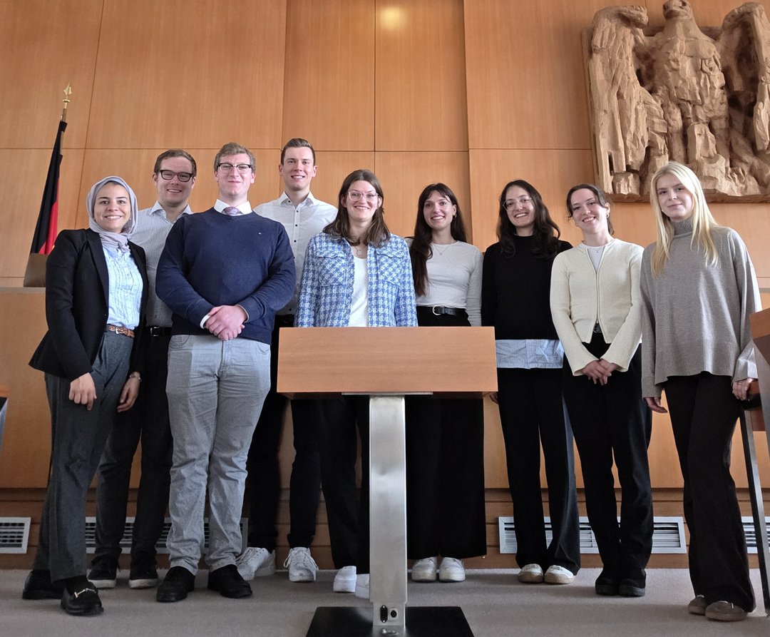 Am 13. Oktober 2025 führte Dr. Sandhu, Habilitandin am Lehrstuhl von Prof. Rossi und derzeit abgeordnet an das Bundesverfassungsgericht, die Mitarbeiterinnen und Mitarbeiter des Lehrstuhls durch das Bundesverfassungsgericht. Die Führung begann mit einem ?berblick über die Geschichte des Gerichts und beinhaltete anschlie?end Erl?uterungen zur Struktur, Organisation und internationalen Bedeutung der Institution. Den Abschluss bildete ein Gespr?ch im Verhandlungssaal des Gerichts mit dem Richter des zweiten Senats, Herrn Thomas Offenloch, bei dem die Teilnehmenden inhaltliche und organisatorische Fragen er?rtern konnten.