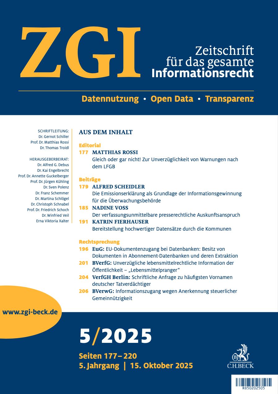 Prof. Rossi nutzt das Editorial?zum Heft 5/2025 der Zeitschrift für das gesamte Informationsrecht zu einer kurzen Anmerkung zu einem bemerkenswerten Beschluss des BVerfG.